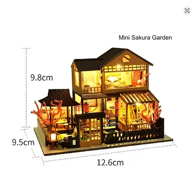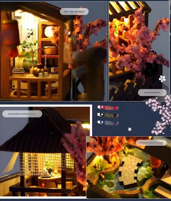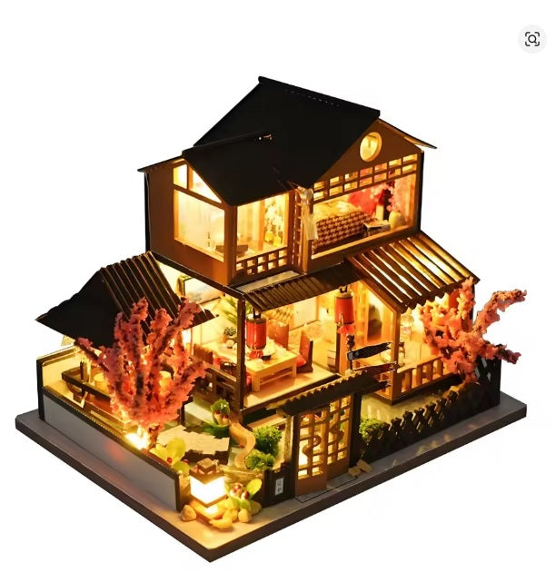 - Mini-maison japonaise détaillée avec lanternes et toits traditionnels
